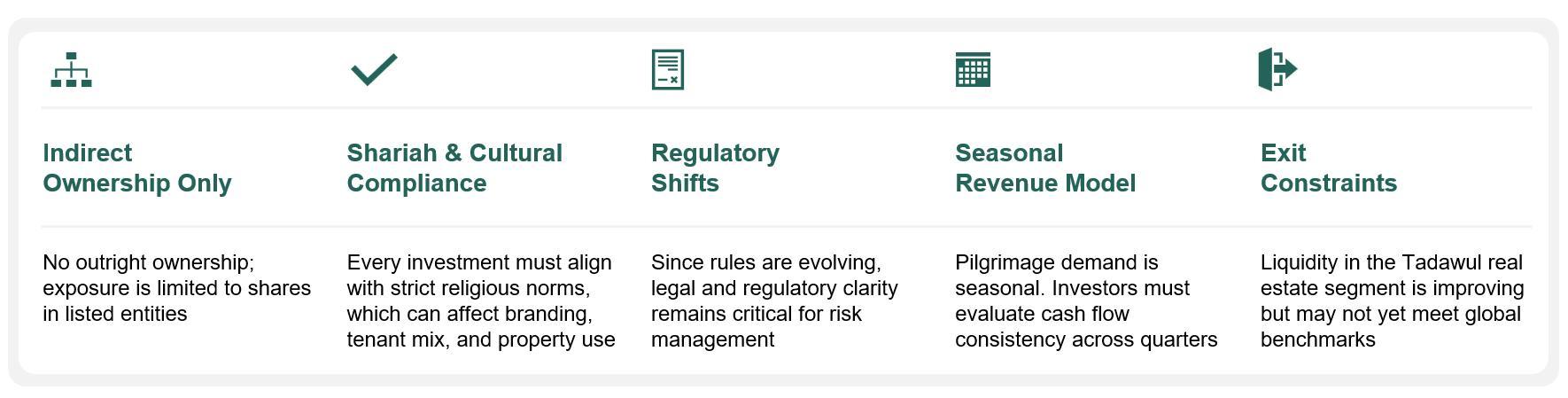 - Shariah Compliance: All real estate activities and structures remain subject to religious and legal compliance reviews, ensuring that investments align with Islamic principles and local sensitivities